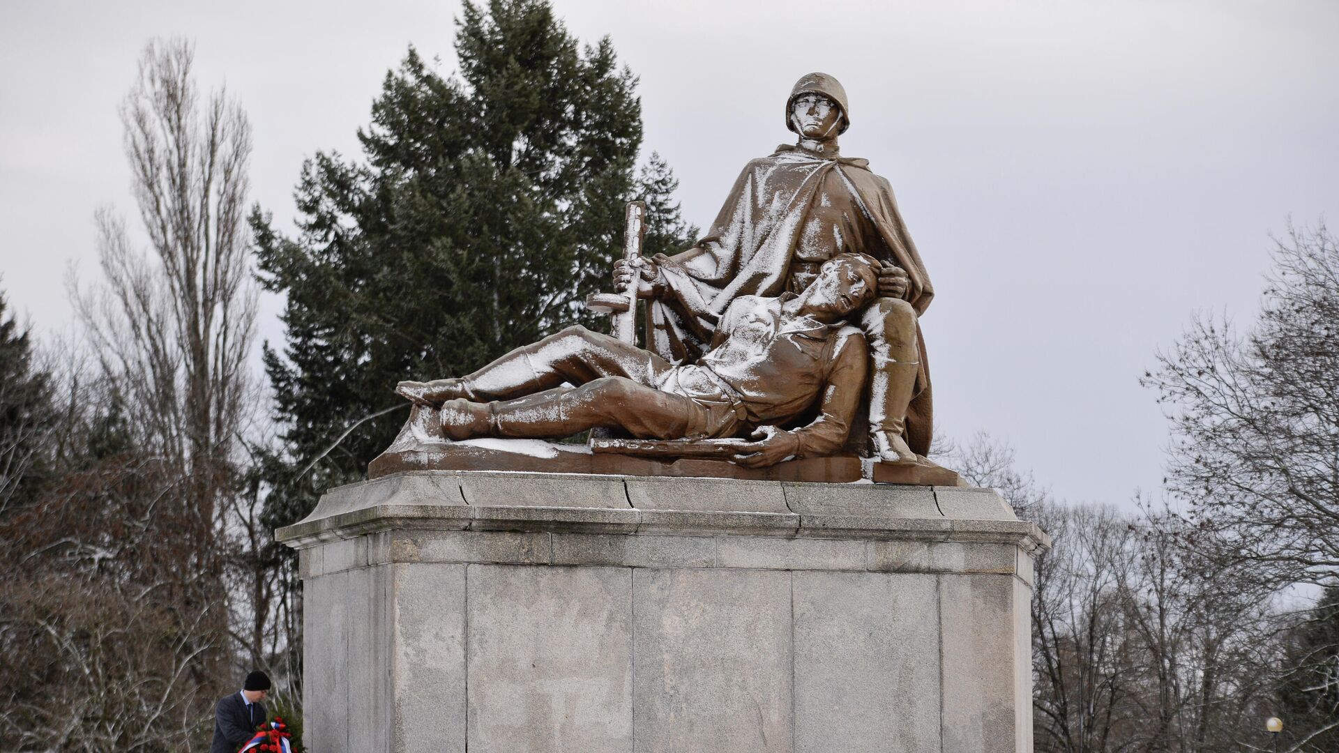 В День защитника Отечества российские дипломаты возложили венки и цветы на мемориальном кладбище советских воинов в Варшаве, сообщает корреспондент агентства.
