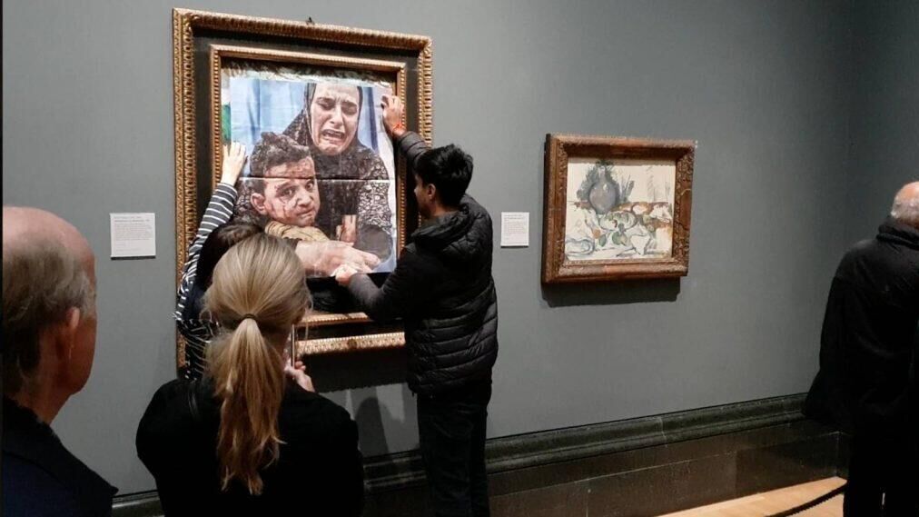 Пропалестинские активисты наклеили фотографию матери и ребенка из сектора Газа на картину Пабло Пикассо в Национальной галерее Лондона.