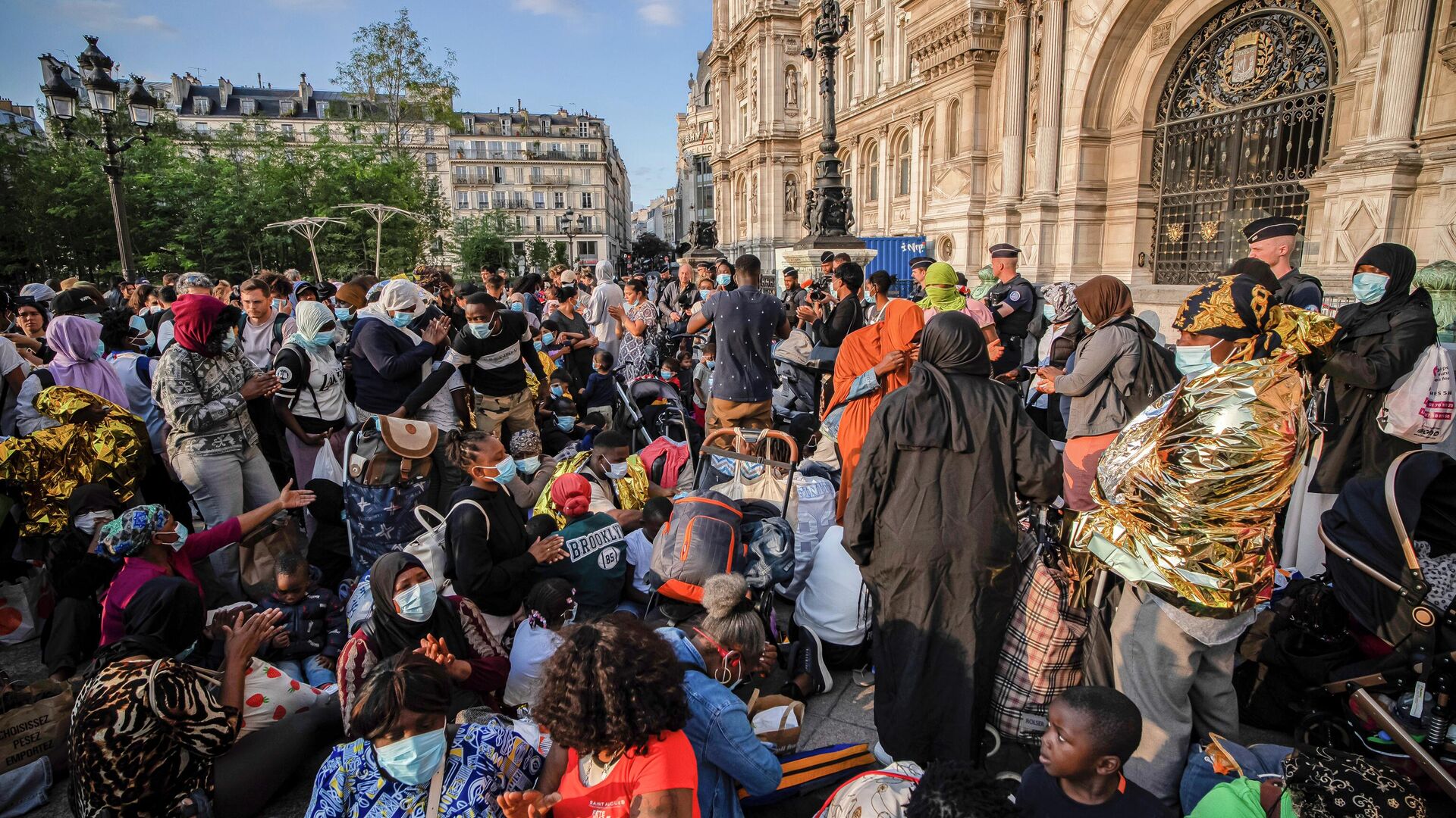 Сотни бездомных проводят протестную акцию у мэрии Парижа, требуя жилье