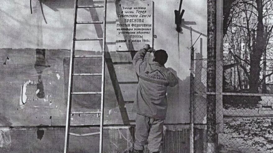 В Одессе сняли мемориальную доску в честь советского летчика Краснова