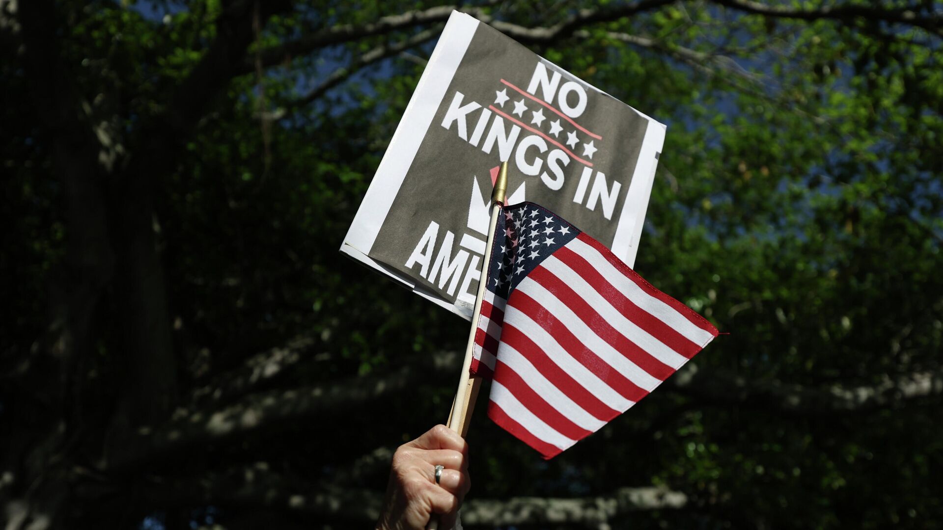 Демонстранты выступают под лозунгом "Нет королям" и выражают свое недовольство возле штаб-квартиры телеканала Fox 5. Участники акции держат плакаты с призывами к импичменту и выражают свое недовольство звуками свистков и барабанов. Несмотря на отсутствие представителей правопорядка на месте, акция проходит мирно. Протесты против политики Трампа начались после инцидентов в Лос-Анджелесе и вызваны действиями службы иммиграционного контроля США.