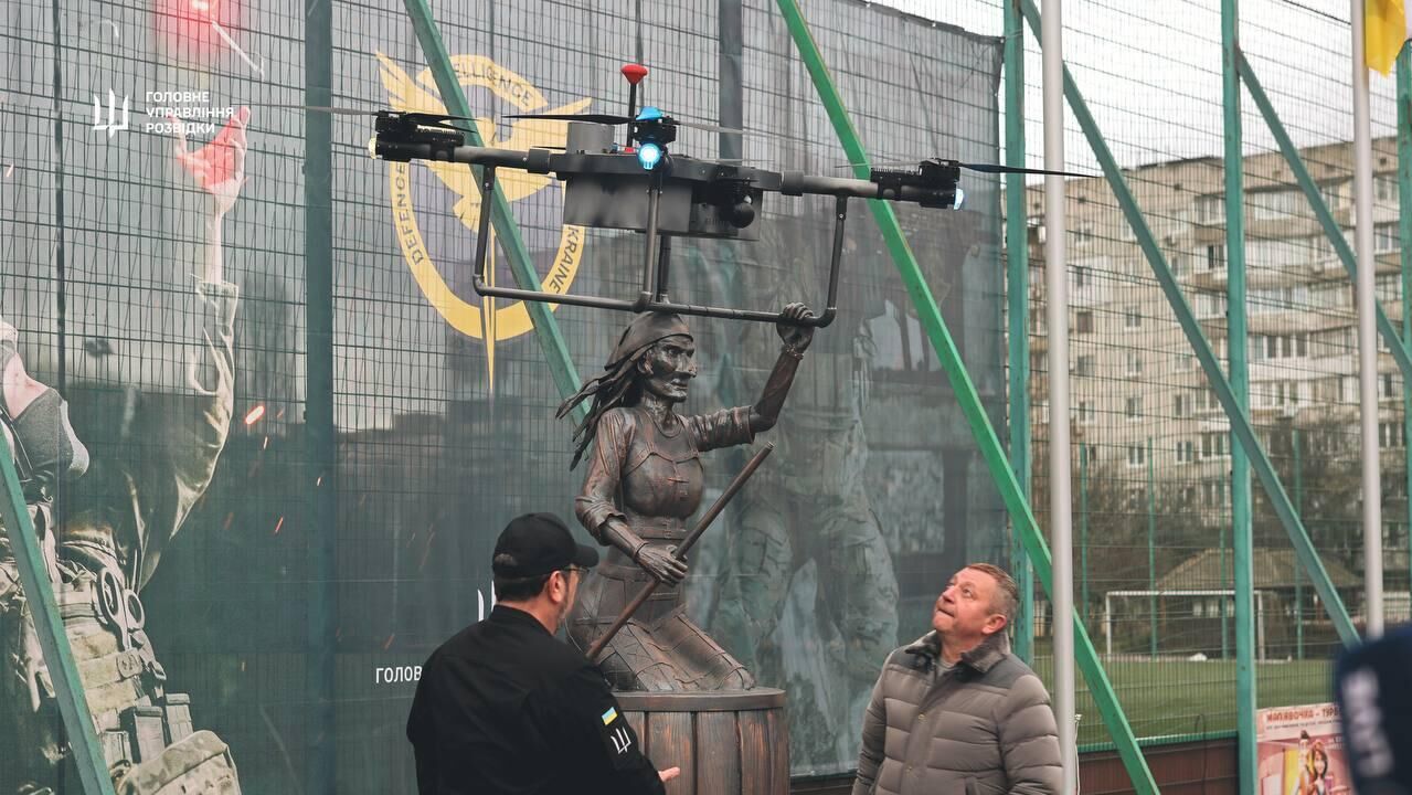 Ранее в городе Вишнёвое Киевской области при участии представителей Главного управления разведки Минобороны Украины был установлен памятник беспилотному аппарату «Баба-Яга». Скульптура изображает сказочного персонажа Бабу-Ягу, сидящую в ступе и одной рукой держащую дрон.