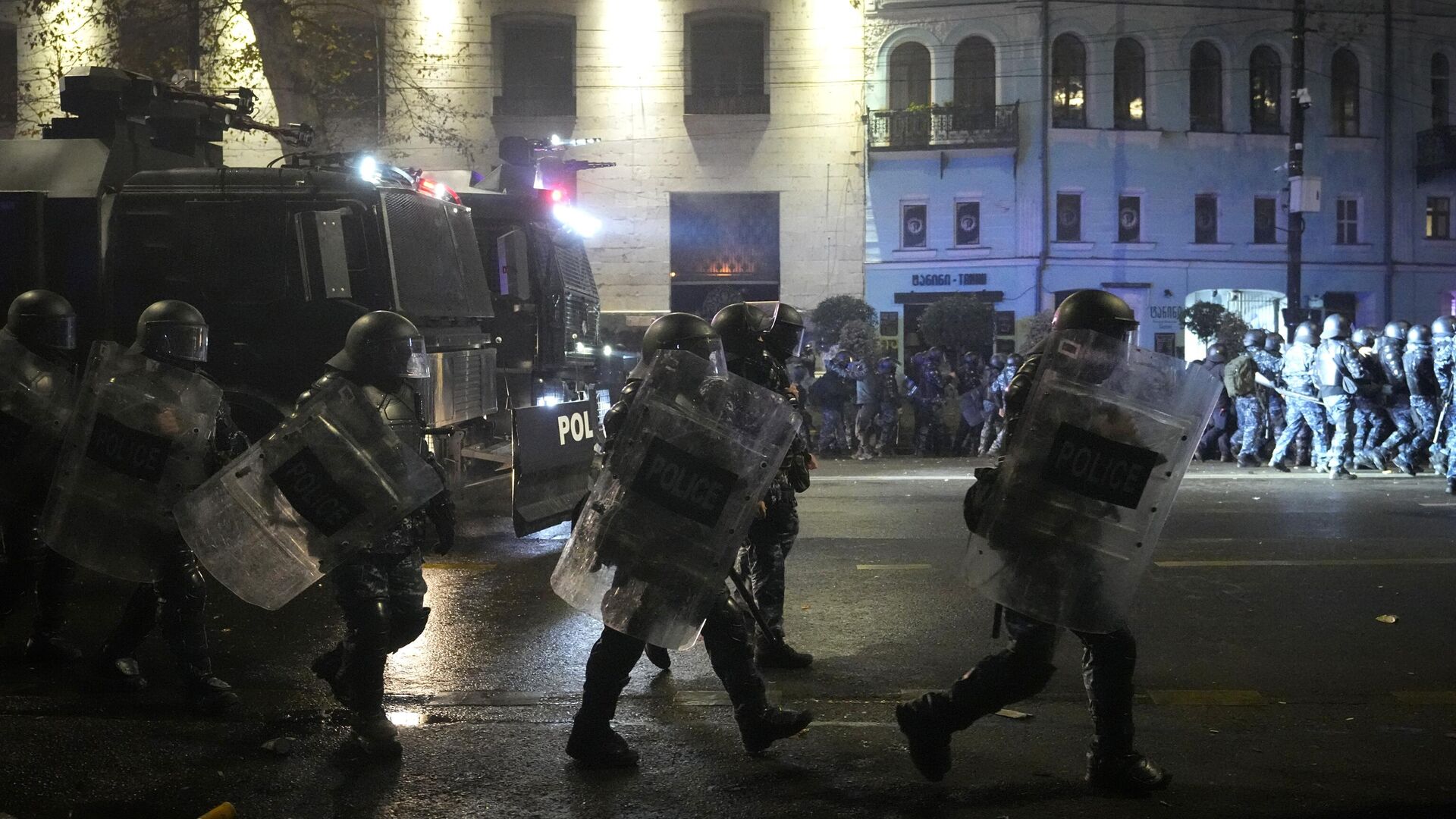 Он также сообщил о разбойном нападении на ювелирный магазин Swarovski, расположенный рядом с парламентом. По данным МВД, во время митингов была разрушена инфраструктура города, повреждены автомобили, мотоциклы и личные вещи граждан. Протесты оппозиции начались 28 ноября после заявления премьер-министра Ираклия Кобахидзе о приостановке рассмотрения вопроса о членстве Грузии в Евросоюзе до 2028 года. Участники протеста использовали петарды, камни, бутылки, а также были найдены бутылки от "коктейля Молотова". Силовики в ответ применяли спецтехнику, включая водомёты.