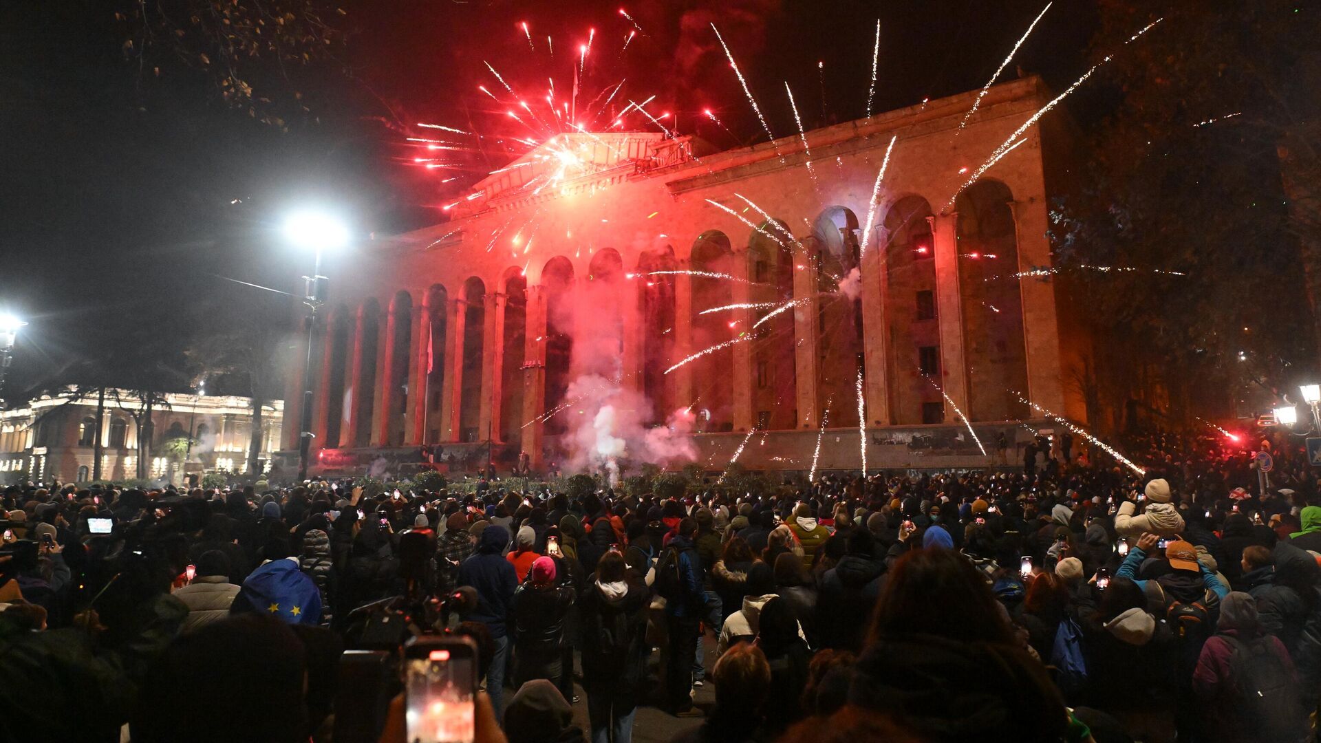 Митинг был более многочисленным, чем в предыдущие дни, начался днем в пятницу с акций в разных частях города и прошел без вмешательства полиции. Это уже шестнадцатый вечер подряд, когда проводится акция протеста. В то же время в здании парламента в субботу коллегия из 300 парламентариев и депутатов разного уровня выберет нового президента. Единственным кандидатом на эту должность является бывший футболист, член сборной Грузии и ныне депутат Михаил Кавелашвили. Серия акций протеста оппозиции началась 28 ноября после заявления премьер-министра Ираклия Кобахидзе о приостановке рассмотрения вопроса о начале переговоров о членстве Грузии в Евросоюзе до 2028 года. Участники протеста использовали петарды, камни, бутылки, а также были обнаружены бутылки от "коктейлей Молотова". Силовики в ответ применяли спецтехнику, включая водометы.